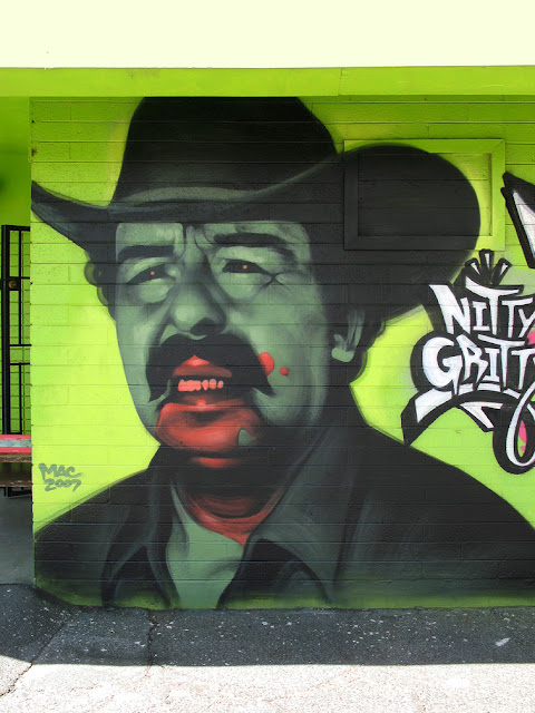 Some of his murals have become local landmarks, especially his collaborations with Retna, which combine Mac’s representational figures with Retna’s typography and designs. The majority of their collaborations have been painted in LA, though a few notable murals were painted in Miami’s Wynwood Arts district for Primary Flight/Art Basel from 2007, 2008 & 2009, including one painted on the Margulies Collection building. Mac and Retna had an important exhibition together, “Vagos y Reinas: at the Robert Berman Gallery at the Bergamot Station in Santa Monica in 2009. Alianza, a book documenting their individual and collaborative works was published by Upper Playground/Gingko Press that same year.He began painting with acrylics and painting graffiti in the mid ’90s, when his primary focus became the life-like rendering of human faces and figures. He has since worked consistently toward developing his unique rendering style, which utilizes repeating contour lines reminiscent of ripples. Turing patterns and indigenous North American art. In 1999 he began to paint portraits of his friends and anonymous Mexican Laborers in public spaces throughout the American southwest, both legally and illegally. He also started painting large technicolor aerosol interpretations of classic paintings by old European masters. This led to being commissioned in 2003 by the Groeninge Museum in Brugge, Belgium to paint his interpretations of classic Flemish Primitive paintings in the museum’s collection. He has since been commissioned to paint murals across the US, as well as in Mexico, Denmark, Sweden, Canada, South Korea, Belgium, Italy, The Netherlands, Puerto Rico, Spain, France, Singapore, Germany, Ireland, the UK, Vietnam and Cuba.